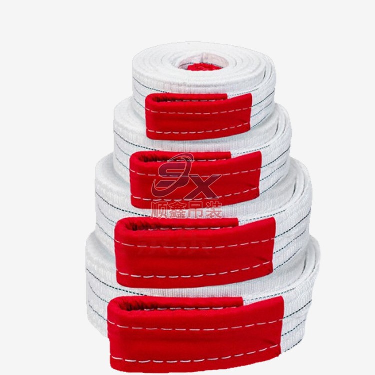 扁平吊帶采用4-8層縫制,整體結構嚴實,加密針織,工業縫紉機一次成型,避免多接頭導致拉力不均。加固吊耳,提升耐磨度,不易打滑,提升瞬間緩沖拉力。其接觸面較寬且平整,不易損傷被吊物。